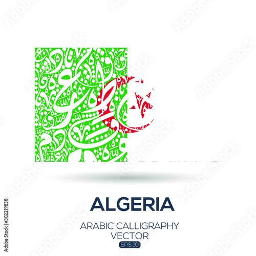 Flag Of Algeria Contain Random Arabic Calligraphy Letters Without Specific Meaning In English Vector Illustration Stock Vector Adobe Stock