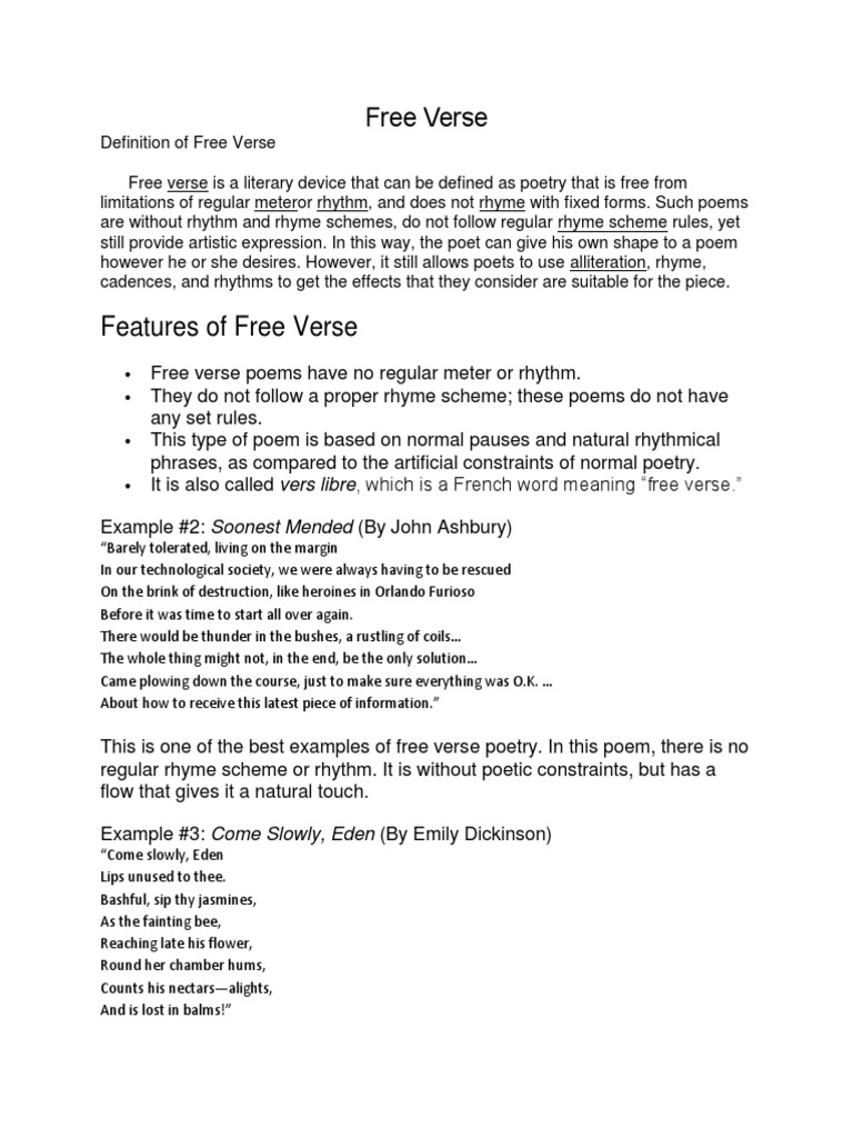Free Verse Poem Definition And Examples On How To Write It