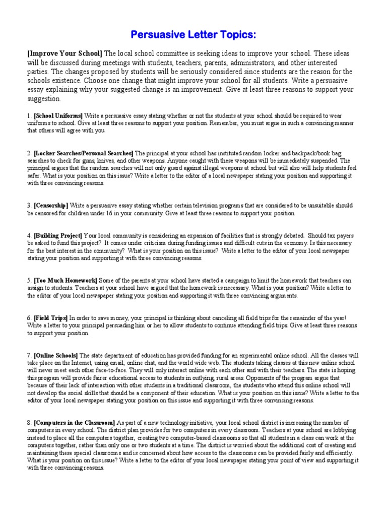 Persausive Writing Topics Schools Classroom